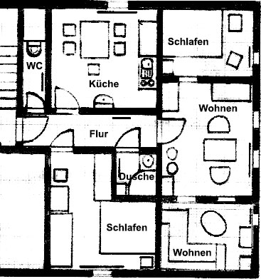 Grundriss der Ferienwohnung 70m² groß